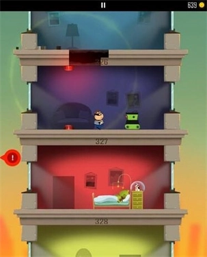 2、跳到有病床的那一层后,就千万别再往下跳了,让老爸自己来回走动,耐心等待UFO出现。