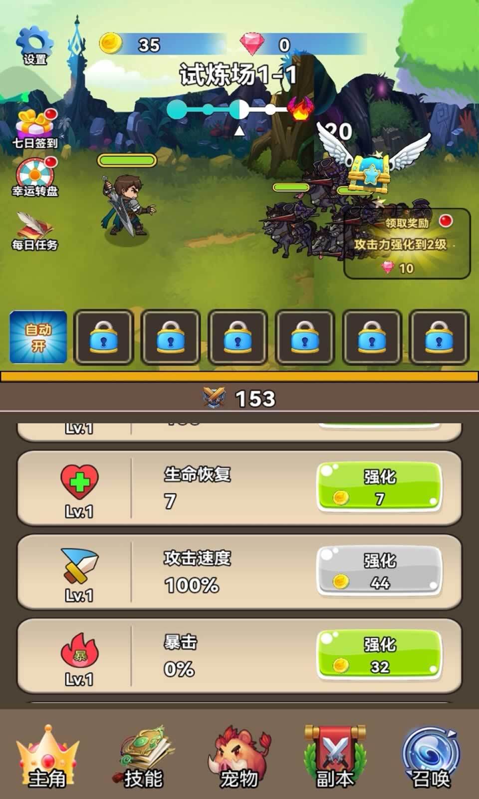 2、把队伍派到各个关卡开展自动战斗,就算处于离线状态,他们也能持续获得资源。