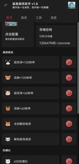 3、鲨鱼画质助手支持一键参数设置,操作体验简洁直观,无需等待即可快速完成配置。采用稳定安全的修改方案,不会引发封禁相关问题。