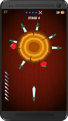 2.点击屏幕发射飞刀,使其精准插在木桩上,以此完成将所有飞刀成功插上的挑战。