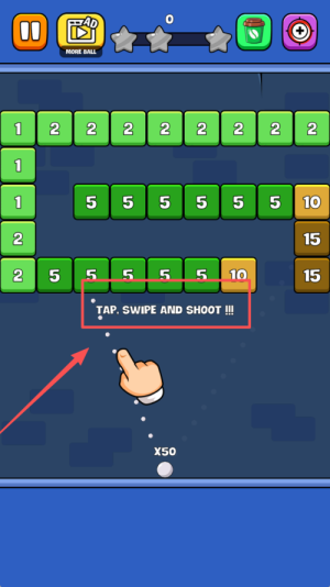 2、碰到设有陷阱的关卡,比如存在隐藏障碍物时,先发射1个小球来试探轨迹,等确定了安全路线之后,再集中火力消除目标砖块。