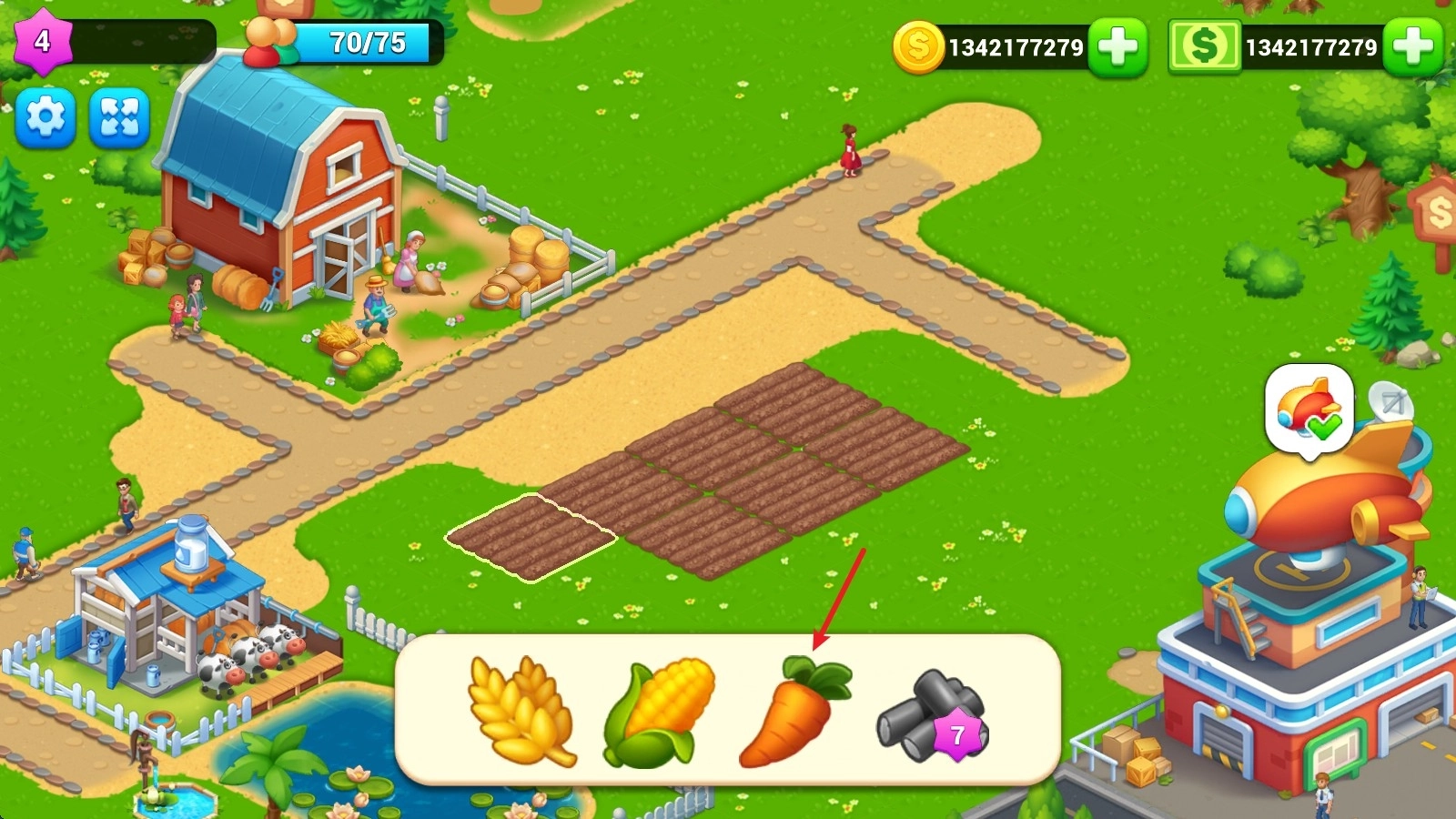 2、待作物成熟后,点击镰刀即可收割。