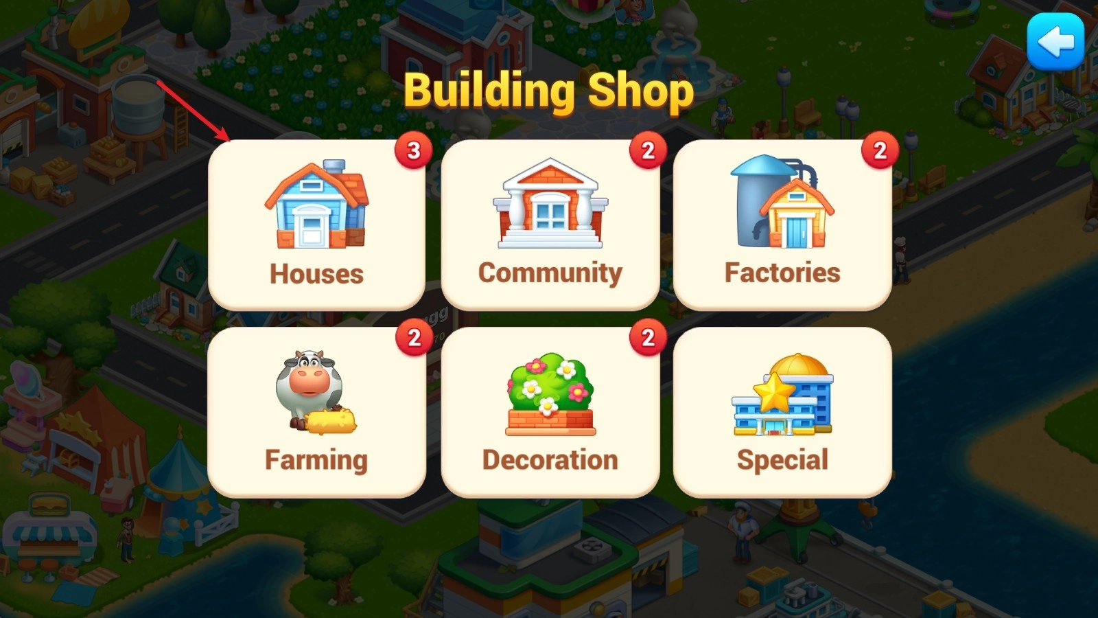 2、随后选择houses进行建造。