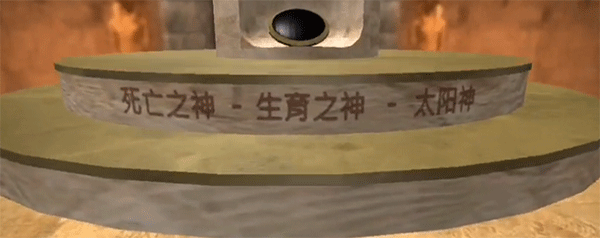 5、启动机关后,在最上层的凸起边缘能看到最后一处提示,内容为死亡之神、生育之神与太阳神。