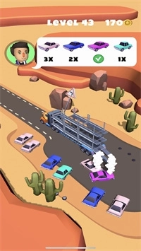 2、卡通风格的游戏画面颇具趣味,车型设计简约,把这些车辆运送至目的地的过程,玩起来十分有意思。