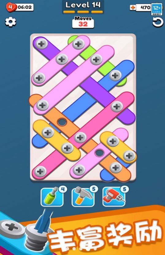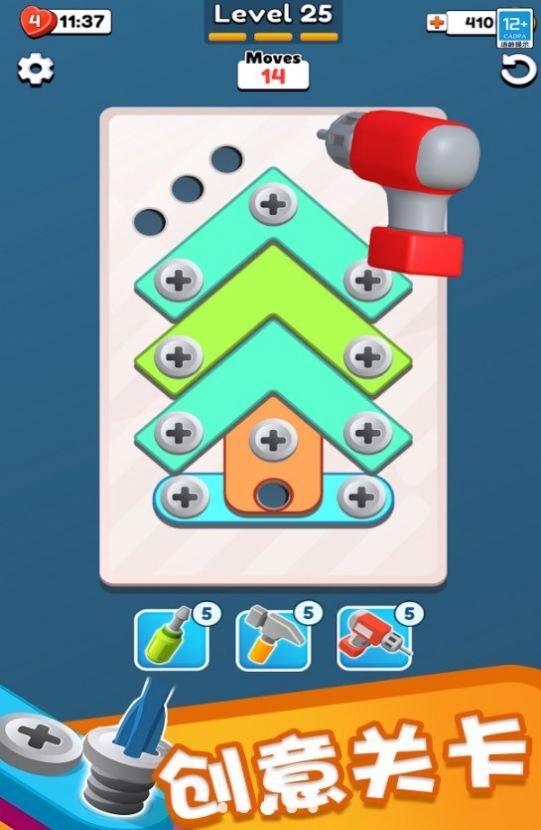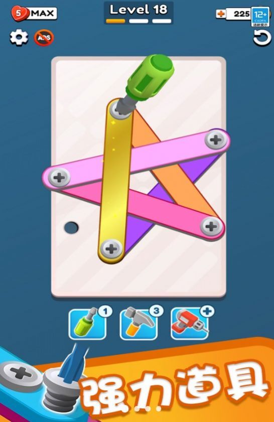 1、新颖独特的休闲竞技类,主打拧螺丝主题;