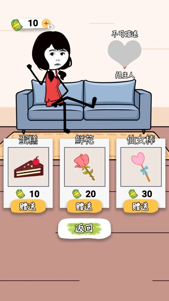 2、点击关系选项,你可以通过花费金钱向小美赠送道具,以此提升双方之间的亲密度。