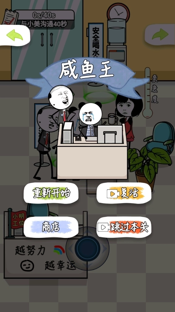 1、围绕职场摸鱼这一主题,打造了一个别出心裁的游戏环境与背景;