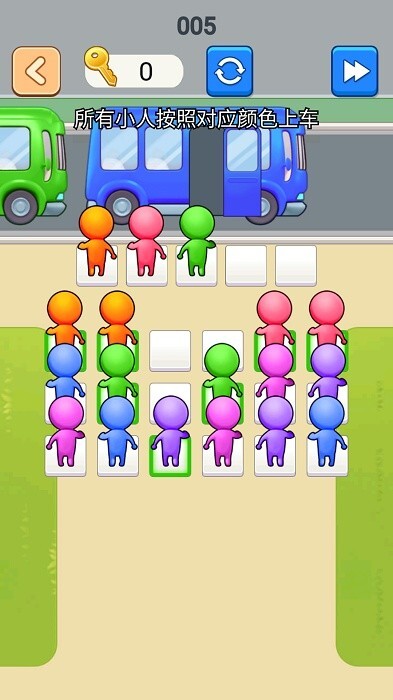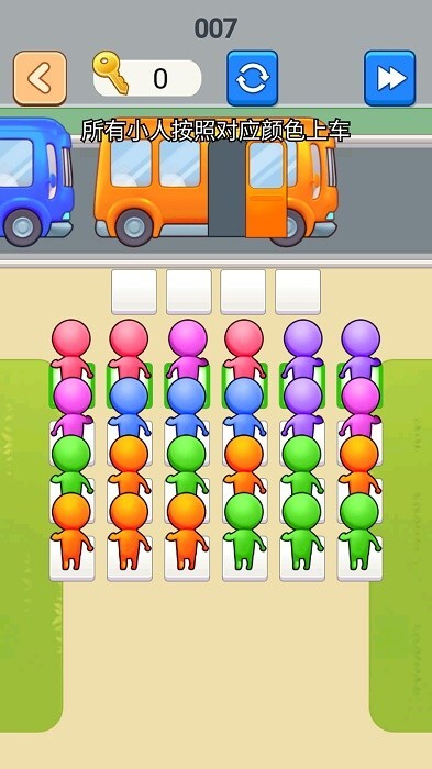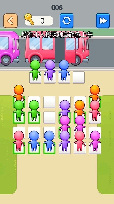 2. 玩家需操控小刀,砍断与小人颜色一致的方块,以此协助小人成功进入车内。