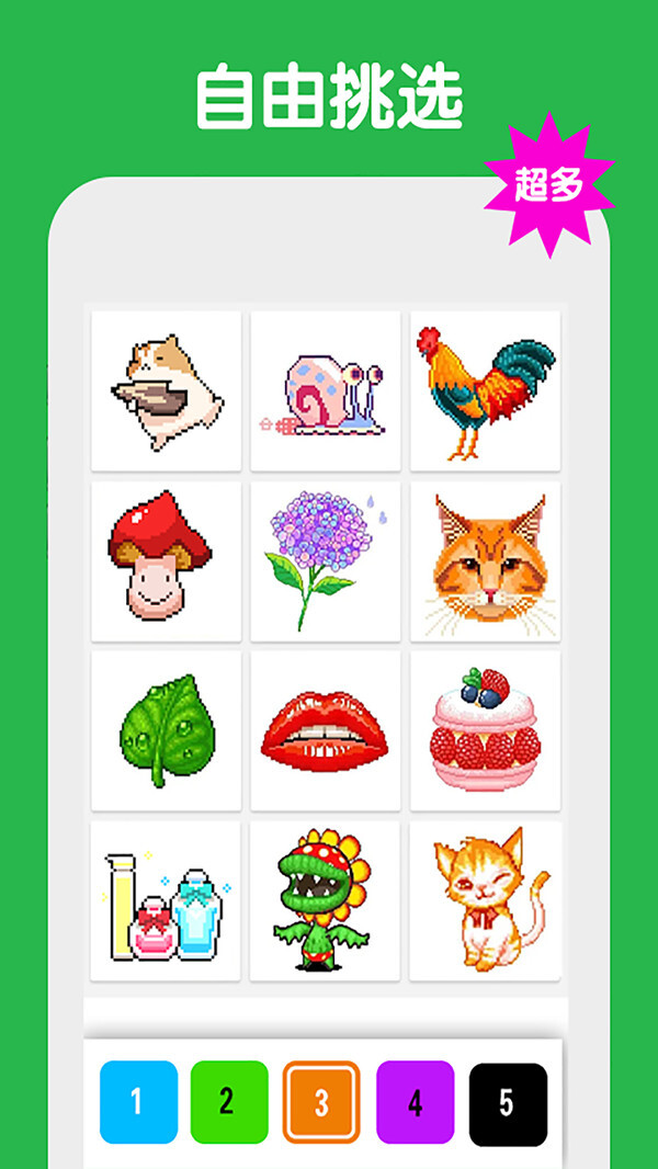 1.起源与发展:数字填色像素涂色游戏是在涂色游戏不断演变、发展与创新的过程中诞生的,它融合了像素艺术与数字填色的特色元素,如今已成为广受欢迎的休闲益智类游戏。