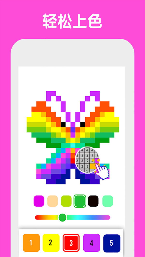 数字填色像素涂色游戏是一款融合像素艺术与数字填色元素的休闲益智类游戏。游戏里,玩家需依据每个像素格子上的数字提示,挑选对应的颜色进行填涂,最终完成一幅幅精致的像素画作。该游戏拥有丰富多样的图案与主题,从基础的几何图形到复杂的艺术作品一应俱全,能够满足不同玩家的需求以及挑战欲。玩家通过逐步解锁不同难度的关卡,既能享受到色彩填充带来的乐趣,也能体验到创作像素艺术的成就感。