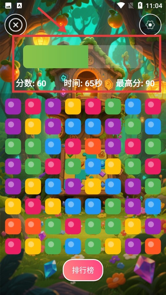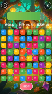 3、不断消除相同颜色的方块以积累分数,与此同时要注意剩余时间,努力在限定时间内获取更高的分数。