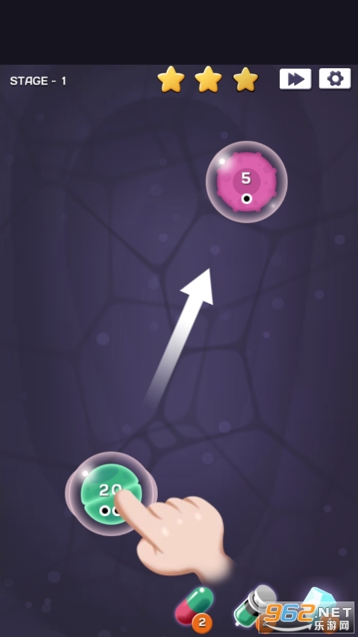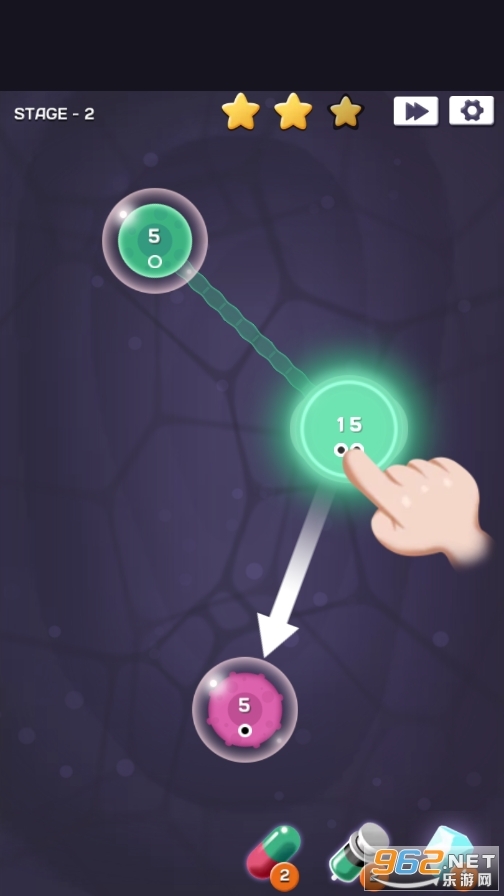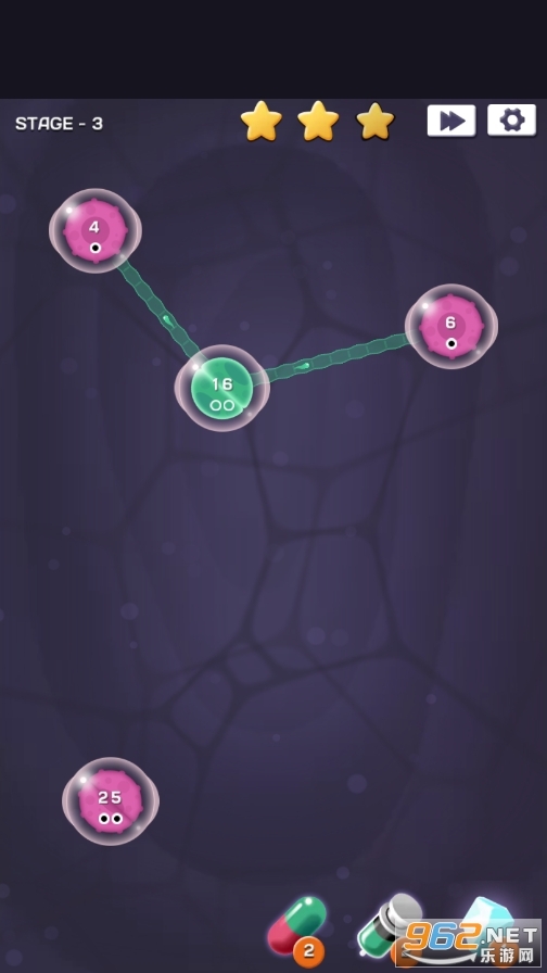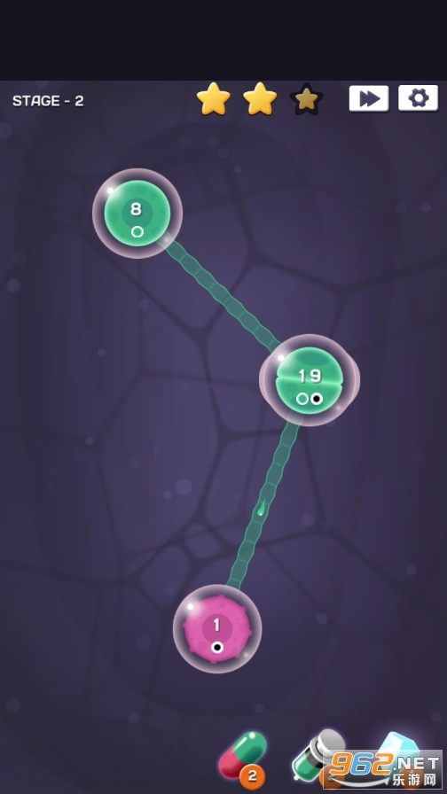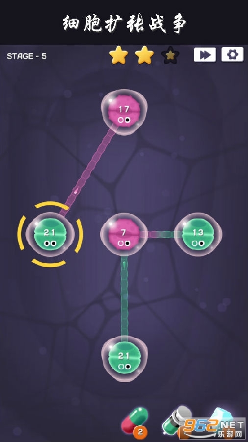 有一些关卡需要你主动舍弃母细胞,借助②强行抢占部分子细胞作为“新据点”,暂时隐忍积蓄力量,等发展壮大后再反攻回去。