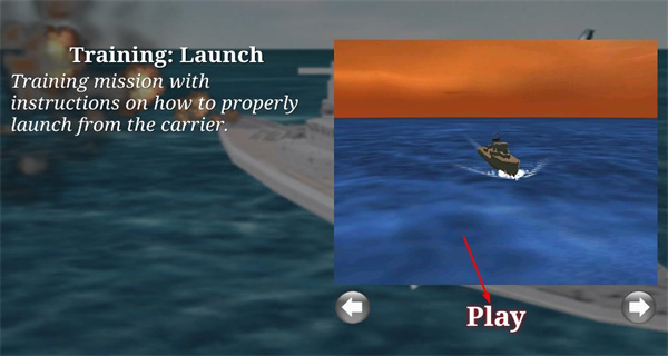 2、进入任务选择界面,选定起飞训练任务(该任务会讲解航母起飞的方法),点击开始即可进入游玩界面。