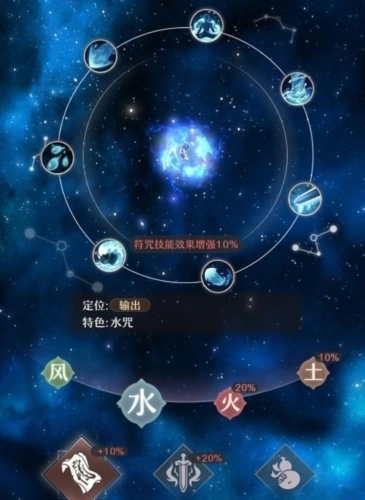 游戏里的水系包含符咒与丹鼎两大流派。符咒流派主打输出与控制,优势在于攻击覆盖范围广、伤害数值高,还能对敌方施加沉默、减速、削弱攻击力等各类效果;丹鼎流派则偏向辅助治疗定位,具备群体回血、法力值恢复以及驱散负面状态、减少所受伤害的能力。