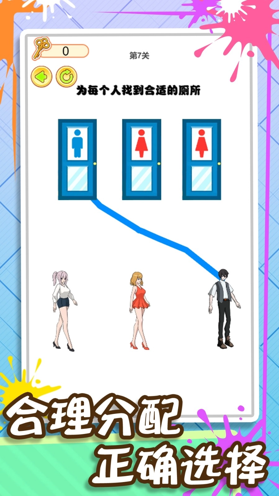 《画线闯到100关》是一款休闲类游戏,玩家需要发挥自己的想象力来迎接挑战。游戏内包含丰富多样的内容,每一个关卡都有着独特的设定,你的目标就是帮助关卡里的角色顺利到达厕所,这样才算完成相应的任务。