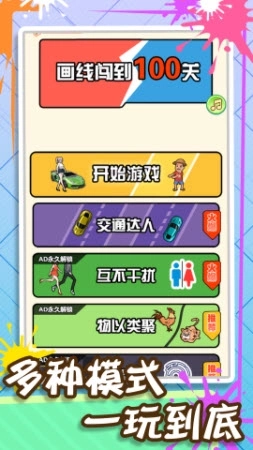 1.这款游戏里设置了各式各样的关卡,你能通过画线的方式来闯关,体验其中的乐趣。