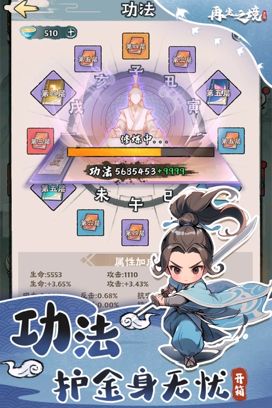 《再生之境》是一款主打Q版画风的放置类仙侠RPG游戏,核心玩法围绕“炼器”展开。玩家将化身初入宗门的年轻弟子,通过开启宝箱炼制法宝、提升装备等级、与他人斗法降妖、收服灵韵仙宠、寻访仙友增进修为等途径逐步变强,最终战胜各路对手,成长为独步三界的无上仙尊。
