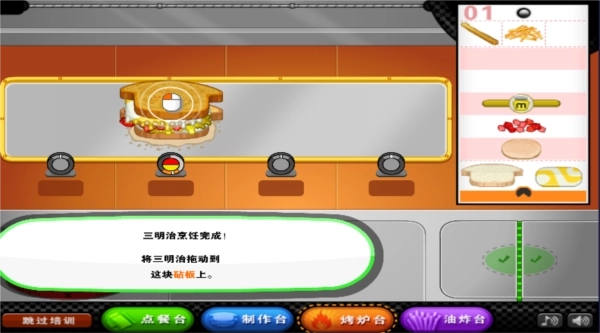 4、然后就开始开门营业了,你将按照顾客的需求制作三明治