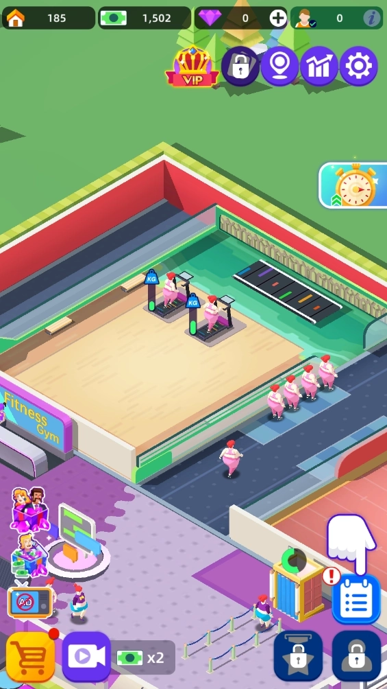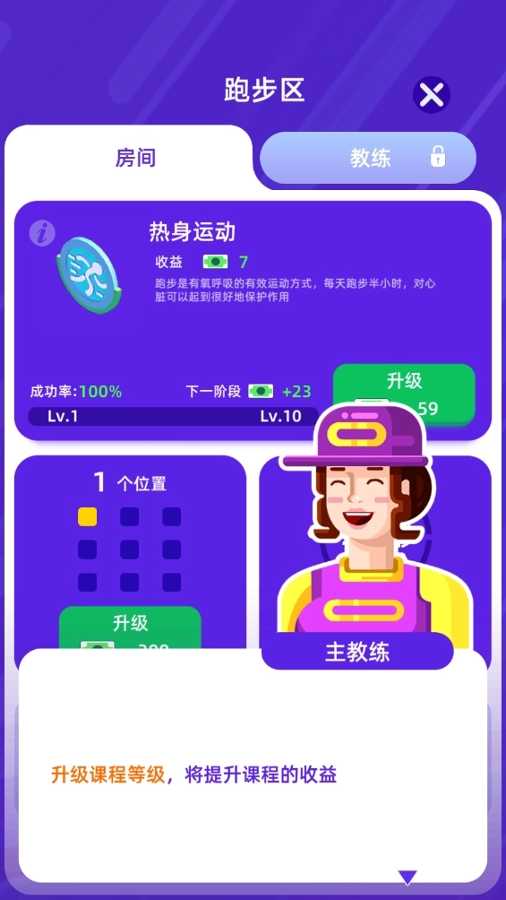 《健身俱乐部》是一款画面精美的模拟经营休闲游戏。在游戏里,你会化身健身俱乐部的经营者,推出瘦身训练营项目,助力有瘦身需求的顾客通过运动减脂,重塑理想身形。身为老板,你的职责是打造出色的教练团队,把这里打造成顶尖健身房,并在全球范围内开设连锁分店!