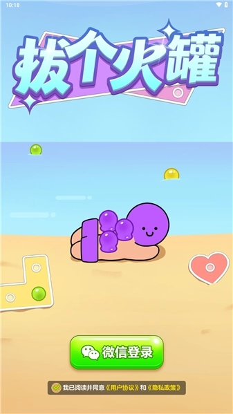 《拔个火罐》是一款以火罐消除为核心玩法的趣味休闲闯关游戏,它创新融合了经典三消机制与拔火罐元素。在游戏里,玩家需要消除同色火罐来推进拔罐任务,比如帮助角色祛除体内湿气等。大家既能沉浸在消除带来的畅快乐趣中,又能体验别具一格的拔罐养生主题,领略中国传统医学文化的独特魅力。