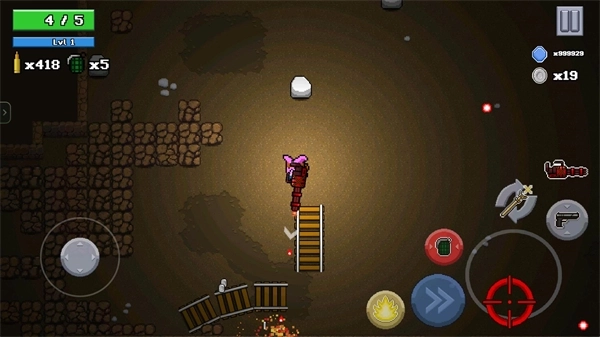 地牢冒险(Gunderground)是一款像素风的地牢闯关游戏。玩家将进入神秘幽暗的地牢,开启一段消灭怪物、探索未知的冒险之旅。游戏中,玩家可操控角色灵活移动:左侧控制走位,右侧点击实现射击、闪避与武器切换。需留意每把武器的弹药量,合理分配火力才能对抗如潮水般涌来的敌人。地牢的每一层都藏有独特怪物与新武器,从近战到远程,多样的攻击方式考验着玩家的策略搭配能力。玩家需深入探索至地牢最深处,挑战强大的BOSS以守护世界。