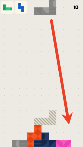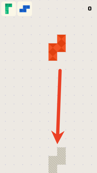 2、单手操作方块,左右滑动可调整方块位置,点击屏幕能旋转方块方向,上滑可预览下一个方块,下滑则让方块加速下落。