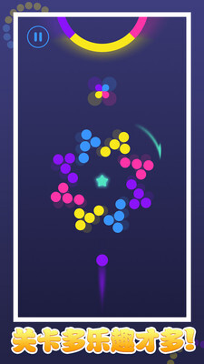 一款以色彩消除为核心玩法的休闲手机游戏,《色彩极限冲刺》的画面设计简洁明了,不过大胆鲜明的色彩运用让整个游戏画面显得格外绚丽夺目。游戏玩法轻松简单,玩家只需通过转动圈环,就能消除相同区域内颜色一致的小球。