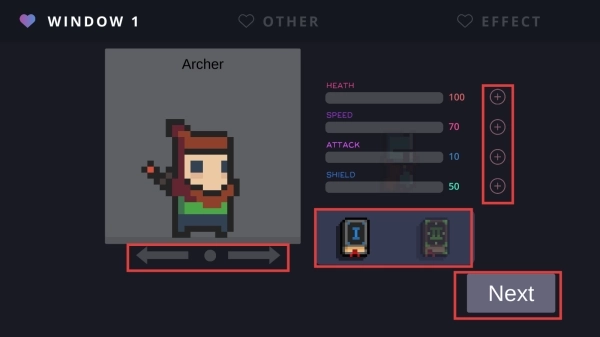 1、在战斗前,可以选择角色职业,还能用宝石增加基础属性值,选择一本增益书后,点击【Next】。