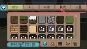 4、查看游戏界面的截图信息,点击蓝色中文解锁额外区块,或者选择标签、挑选方块进行建造。