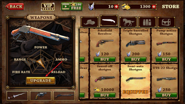 3、购买后的武器,还可以点击进行升级。