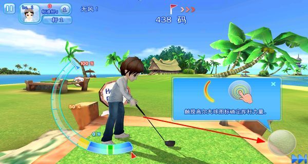 滑动屏幕来控制击球角度与力度条的设计十分人性化,能让新手快速上手,同时又未走简化路线,保留了高尔夫运动本身具有的技术深度特性。