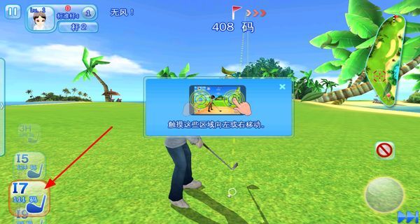 2、点击高尔夫球图标来精准把控挥杆力度,仔细拿捏击球的最佳时机,把球有力地打出去,朝着目标方向一步步稳扎稳打地推进。