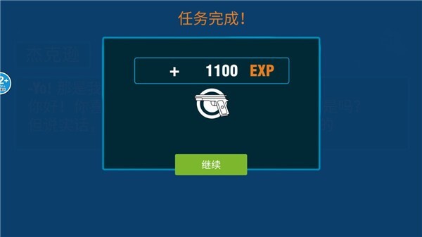 4、靠近目标后便会完成第一个任务,任务奖励通常包含经验与金钱两部分,经验用于提升等级,金钱则可用来购买弹药、车辆等物品。