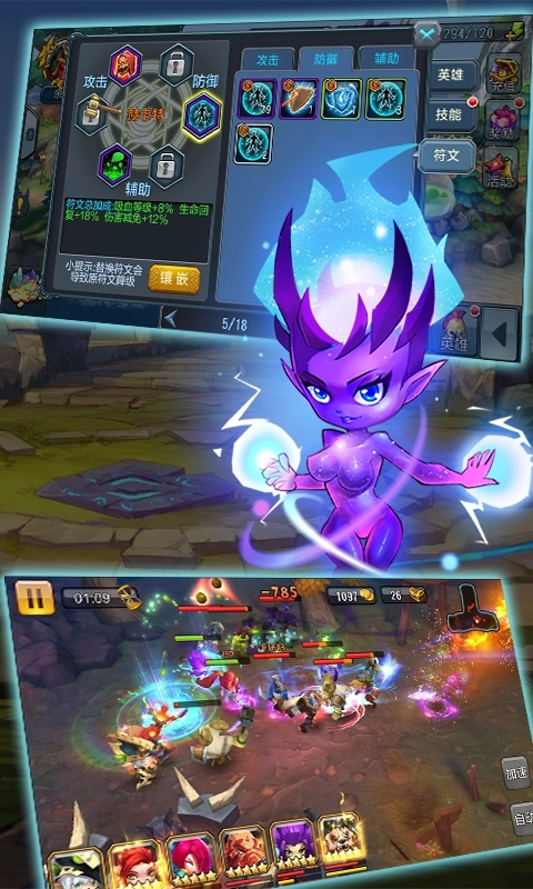 1、MOBA类玩法,支持1v1、3v3实时PVP模式,让你能随时随地开启PK切磋;指尖之上的精妙操作,决定着瞬息万变的胜负走向。