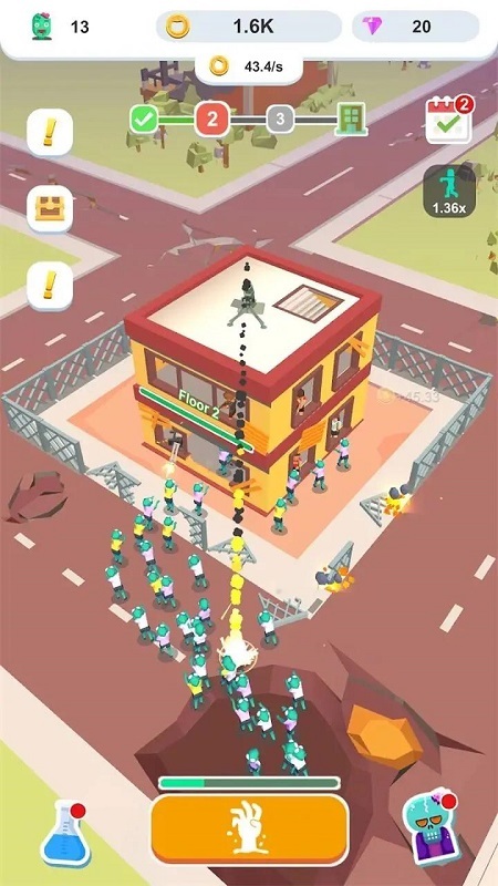 2、玩家能够制造出越来越多的僵尸在城市里到处进行破坏,借助破坏所获得的金币可以对僵尸的各个方面进行强化,进而进一步提升破坏城市的效率。