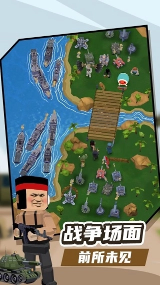 1、游戏画面可爱又简约,呈现出轻松休闲的模拟体验。军事题材的游戏融入萌元素,采用傻萌的画面风格。