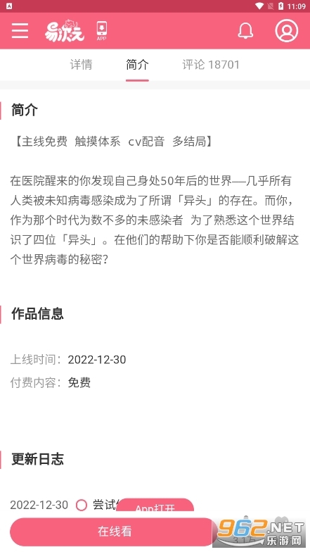 在医院苏醒后,你意识到自己来到了五十年后的世界——此时绝大多数人类都因未知病毒的感染,变成了被称为「异头」的存在。作为那个时代屈指可数的未感染者,你为了尽快熟悉这个陌生的世界,结识了四位「异头」。在他们的协助下,你能否顺利揭开这个世界背后病毒的秘密?