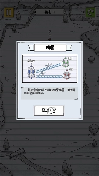 3、关卡内每种颜色各自代表着不同的城堡阵营,城堡上方的数字可以理解为战力,合理调控城堡战力,并消灭当前关卡挑战内的其他阵营。