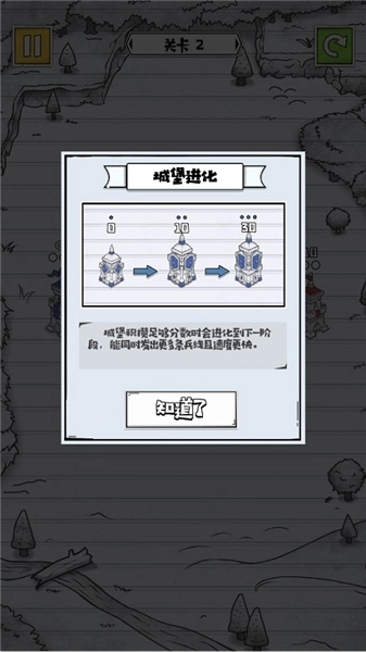 4、如图所示,城堡积攒足够分数时会进化到下一阶段,能同时发出更多条兵线且速度更快。