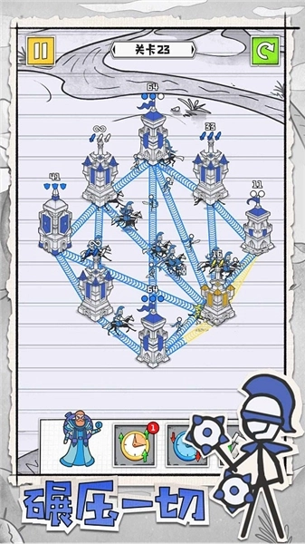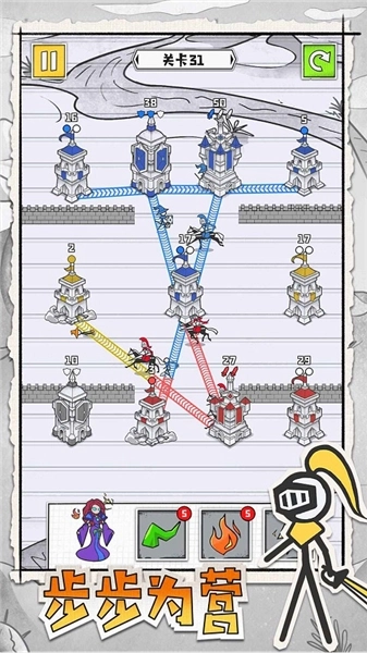 6、当城堡到达高分时,会将接收的火柴人士兵派发出去