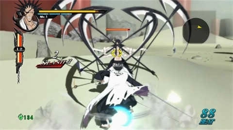 2、接下来是夜一的灵压攻击“暗剑”,可叁连发、实用性高、出招速度快、灵压损耗量极低、破坏力中上,出招时会射出3~5发手里剑攻击敌人,一样是有锁定就会追敌、没锁定以扇形射出,虽然说实用性与其他角色的灵压攻击相比只能算是一般,但是对普攻平平、灵压攻击一般、必杀技命中率过低的夜一来说,暗剑算的上是夜一主攻技了,初期攻击力不高、灵力不足,所以充其量只能拿来做为接连段数的手段,但是等到灵压表有5格左右,夜一攻击力提升到某个程度的时后,就能突显此招的价值。