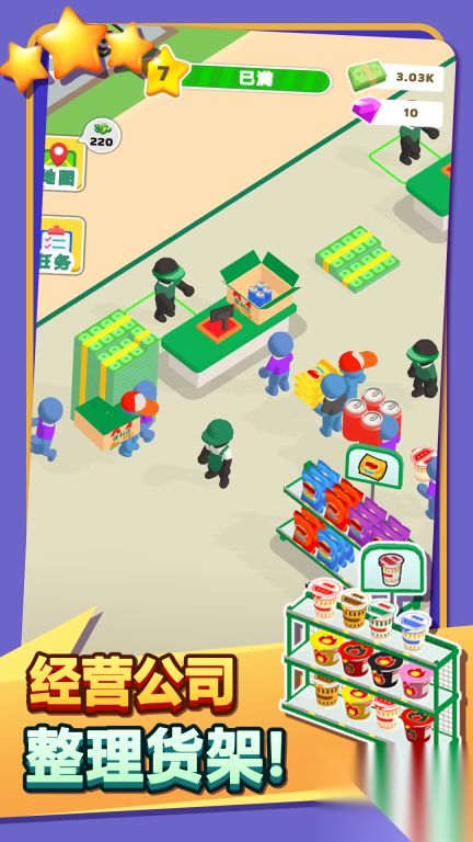 2、玩家从超市起步阶段着手经营,需要合理规划超市的空间布局,打造出具有独特风格的超市,为顾客提供舒适便捷的购物体验。