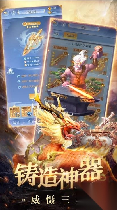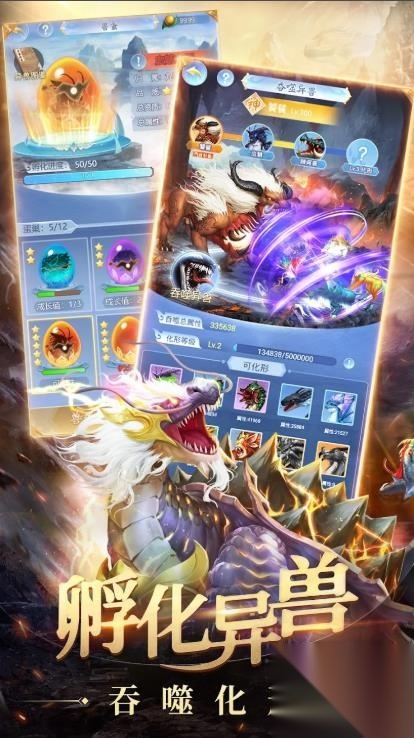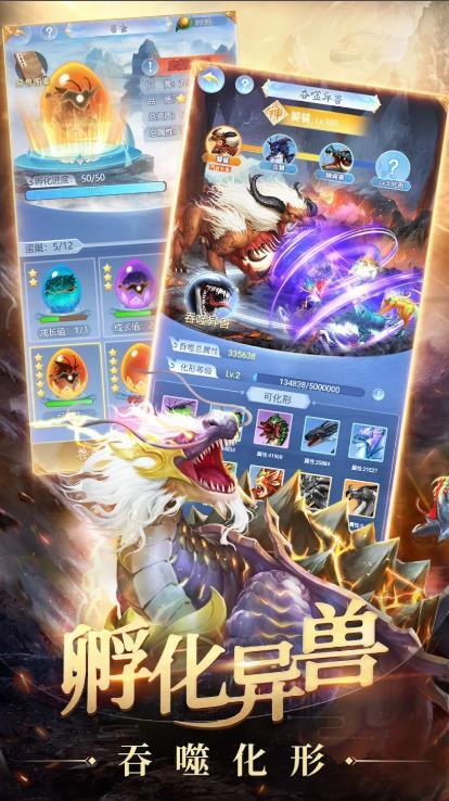 1、吞兽成长解锁更多外观与战斗技能,策略搭配,战力飙升。 2、通过炼气、炼体、炼神,完成雷劫渡劫,提升自身修为。 3、搜集散落三界的神兵利器,激活套装效果,提升核心战斗力。