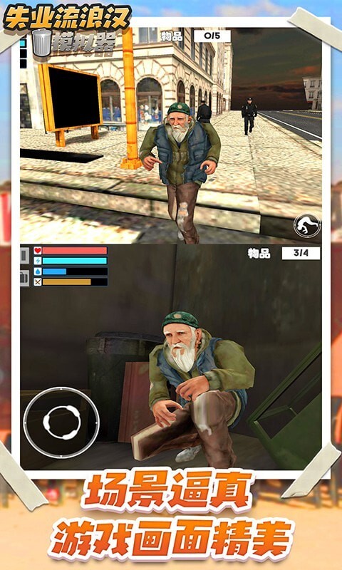 《失业流浪汉模拟器》是一款趣味十足的冒险生存类手游。在游戏里,玩家将扮演一位因失业而沦落的乞丐,需要在城市中努力生存下去,完成各种挑战。游戏画面精致细腻,能让你在体验过程中感受到人生的酸甜苦辣。感兴趣的玩家不妨来试试这款游戏,开启一段别样的生存之旅吧。