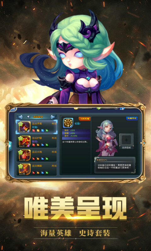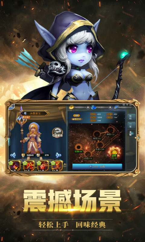 致敬经典魔兽卡牌的《怒火战歌》震撼登场!这里有惊心动魄的战斗画面,众多熟悉的英雄悉数亮相,支持实时对战,让你在守护正义的同时,感受别具一格的竞技快感。更有恶魔关卡等待你跨服挑战,快来体验吧!
