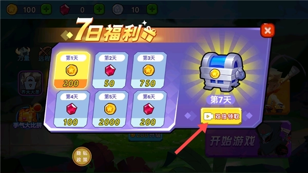 2、留意【7日福利】活动,每日登录领取对应奖励(如金币、钻石),第7天点击【双倍领取】获取更多资源。