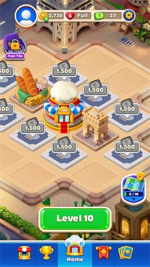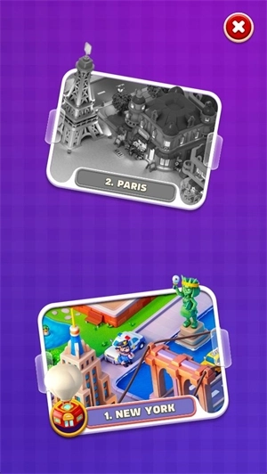 3、这里有各式各样的建筑等待你通过闯关去解锁,每一处地点都藏着不同的建筑,你可以解锁它们来感受全新的乐趣。