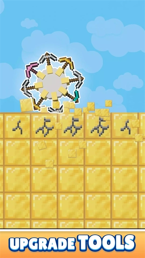 收集钻石来获取金钱,用这些钱购买更多镐头和进行升级。随着进度不断推进,逐步扩展你的采矿业务,解锁新的等级。