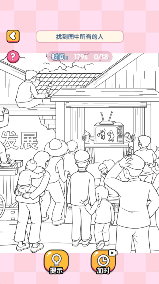 2.在“怀旧蹭电视”关卡里,玩家需要找出图中的所有人物,这对观察力是不小的考验。